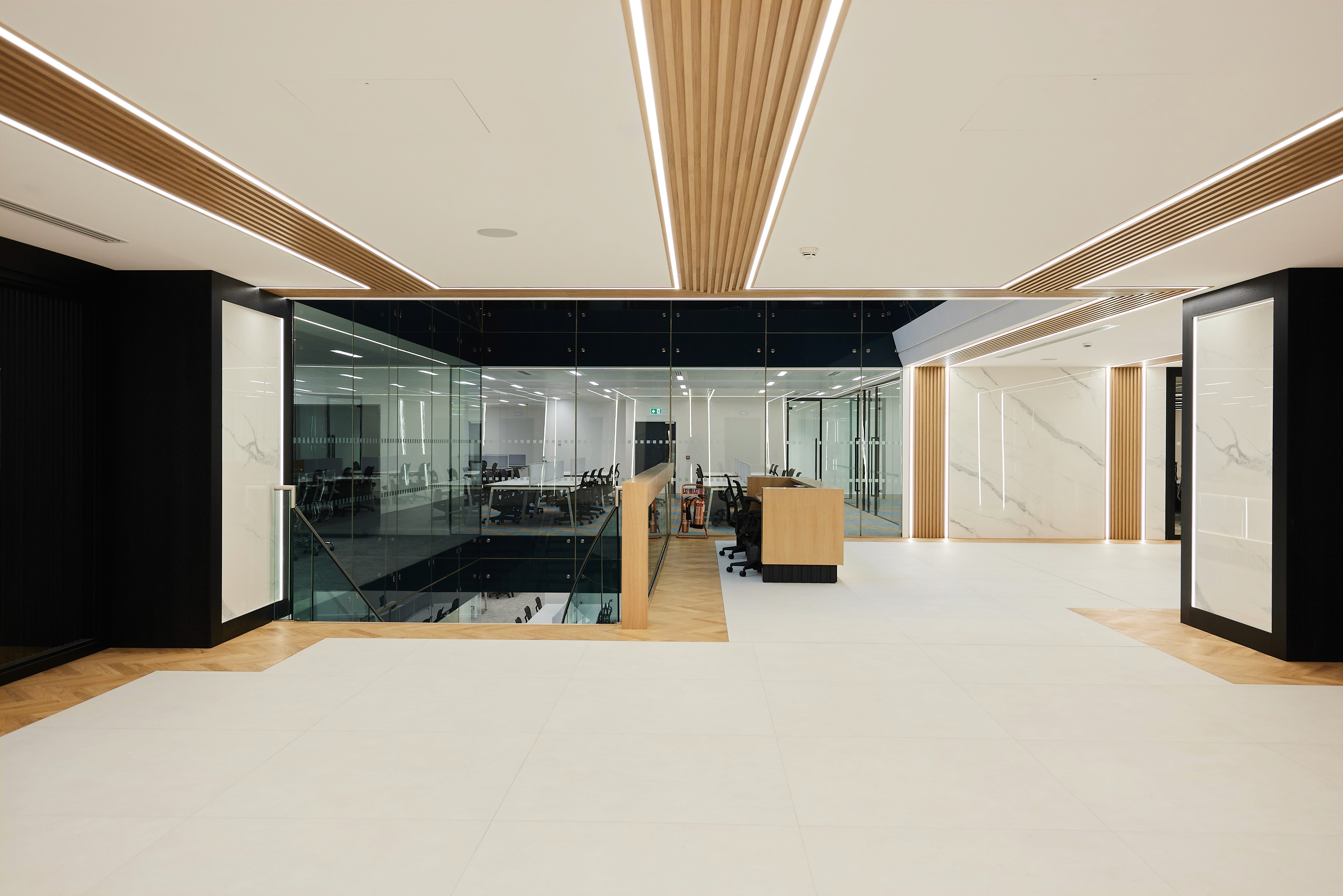 Reception and entrance refurbishment for a prestigious office building.