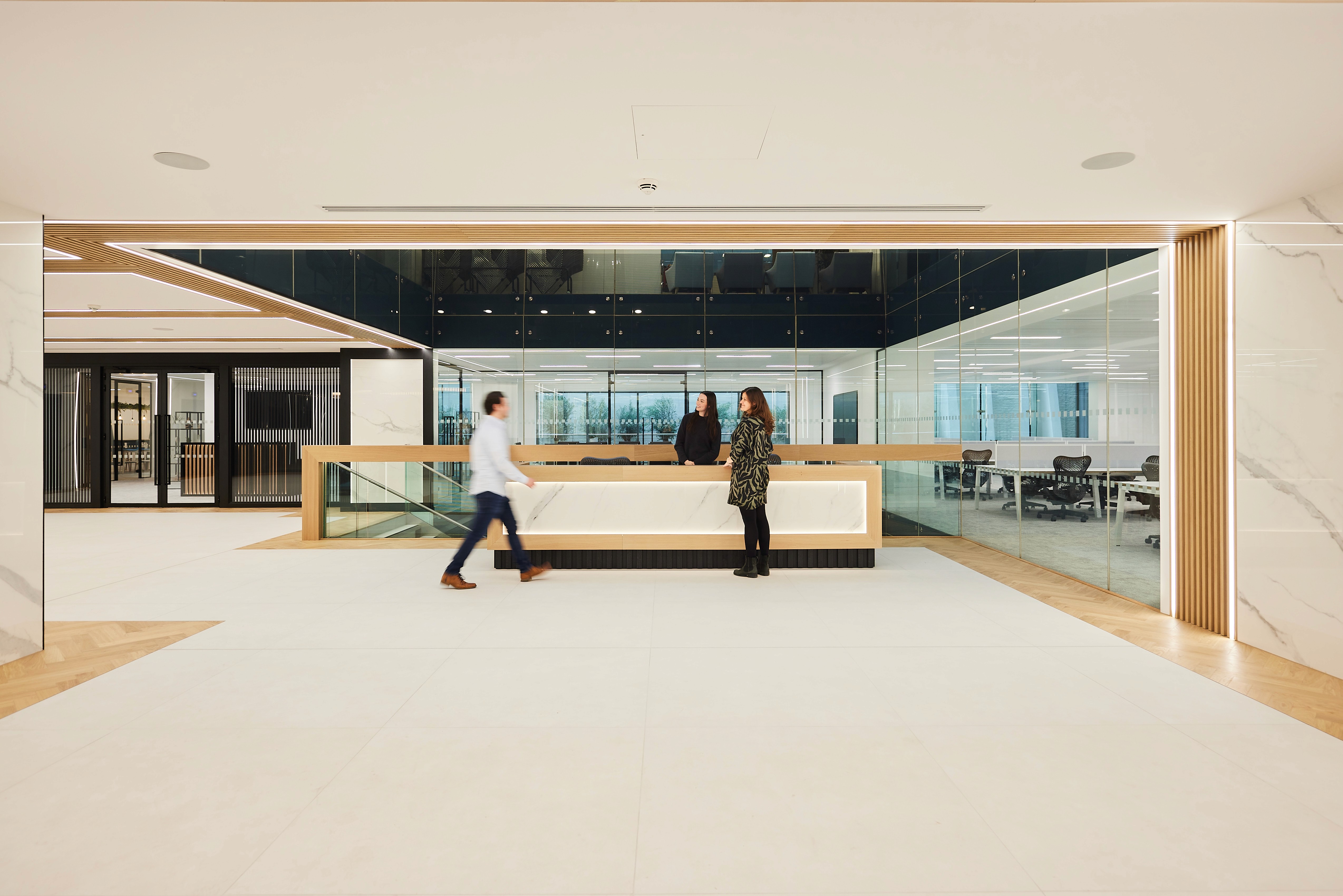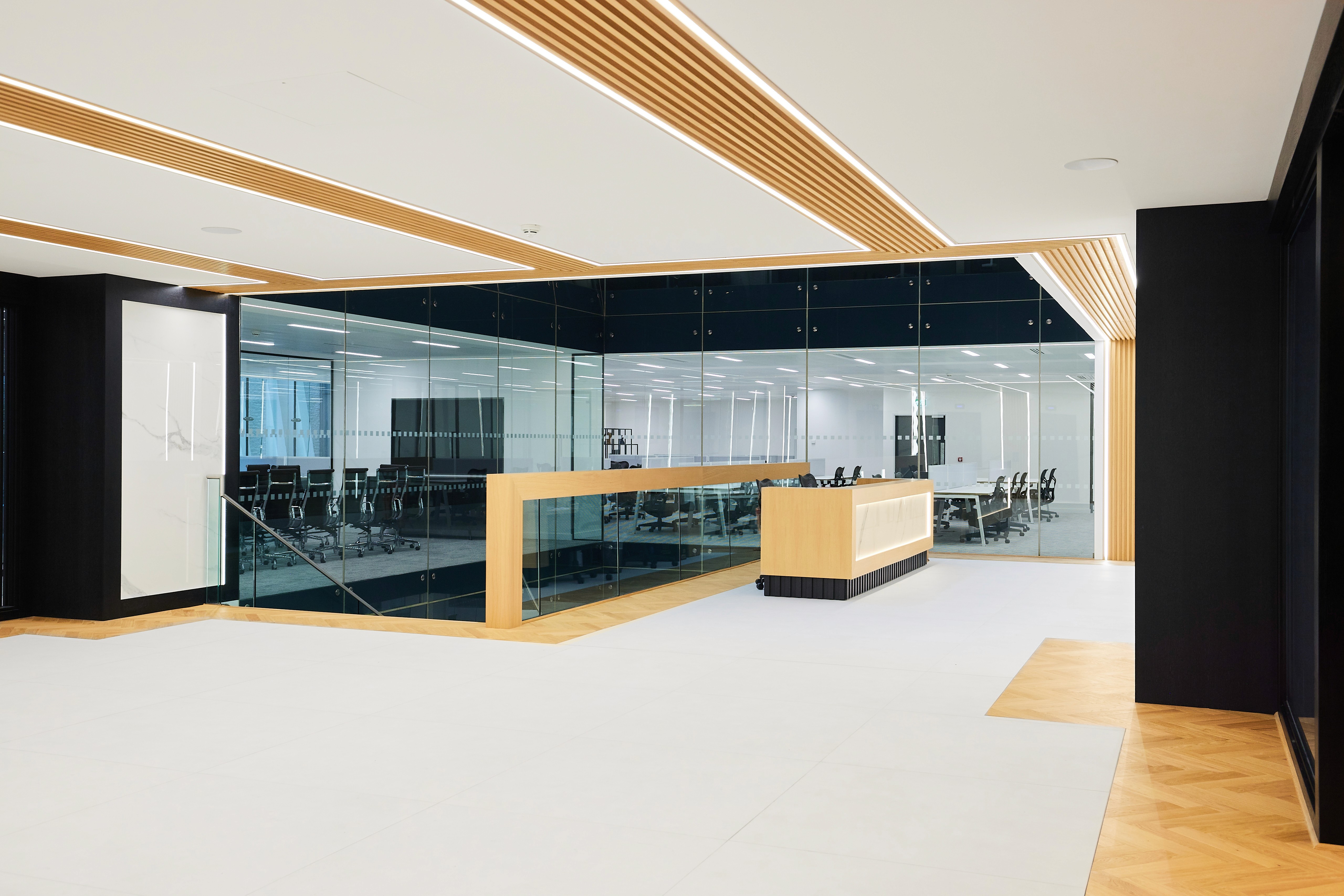 We collaborated closely with the client to transform the outdated reception into a light-filled, contemporary space that feels both professional and inviting. The design focused on creating a strong first impression while improving the overall experience for tenants and guests.